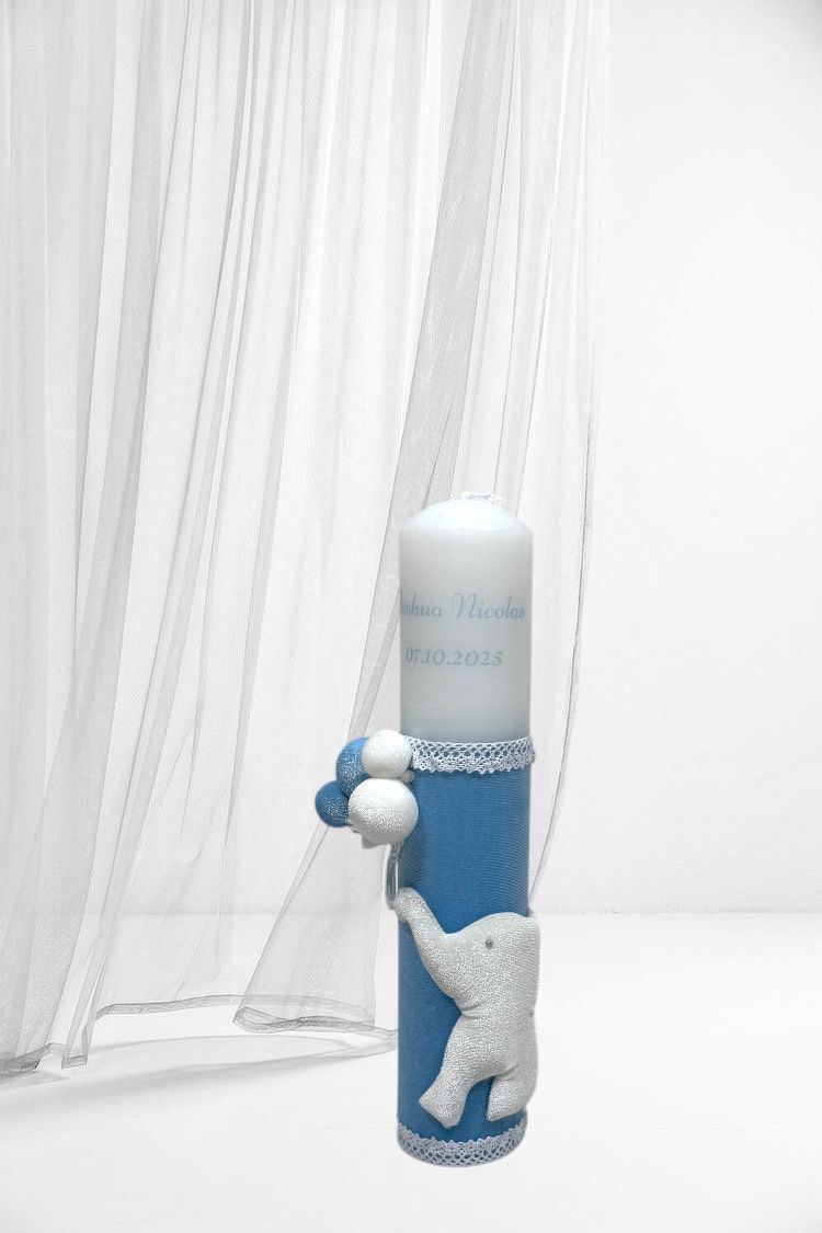 Lumanare botez decorata cu accesorii de calitate. Lumanarea se poate personaliza la cererea clientului contracost