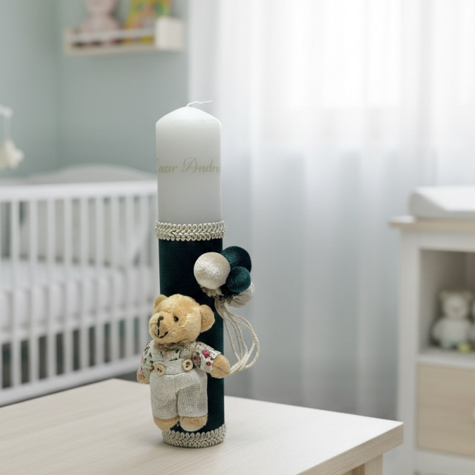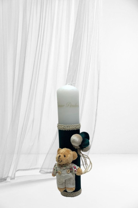 Lumanare botez decorata cu accesorii de calitate. Lumanarea se poate personaliza la cererea clientului contracost