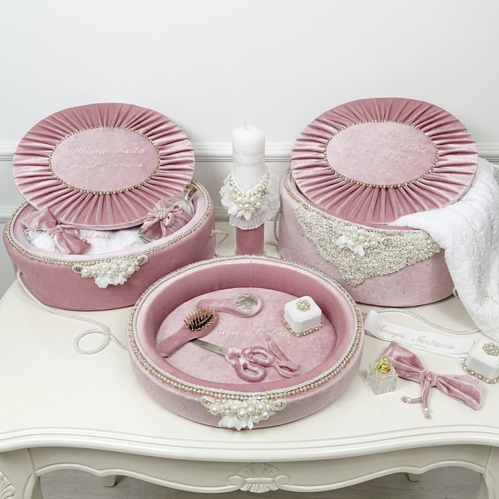 Ola Baby Set trusou botez cu lumanare + Set prima baita + tavita taierea motului Glamour